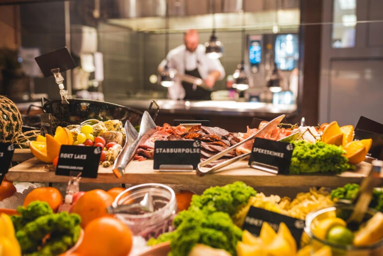 – Det finnes gluten- og laktosefrie alternativer på hotellets frokostbuffé.