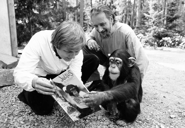 Apekatt og kriminalroman: Den første barneboken om sjimpansen Julius blir kjempepopulær og oppnår eventyrlige salgstall. Når bokhandlerne i Norge gjør opp status for 1983 er Julius-boken nummer to på bestselgerlisten, kun slått av en krimroman av Allister MacLean. Boken er laget av Arild Jakobsen (foto) og Trygve Bj. Klingsheim (tekst).