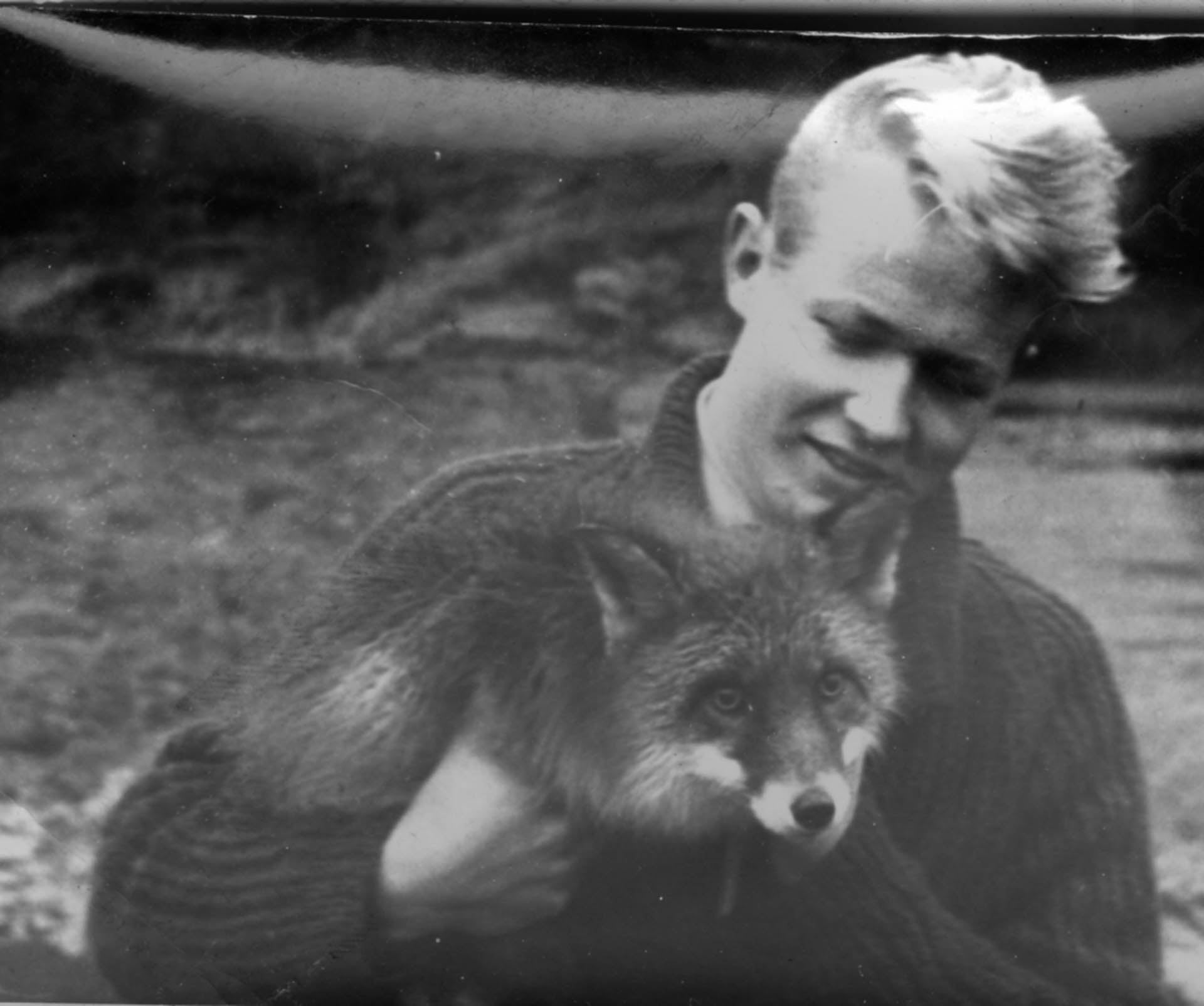 Den nye direktøren: Edvard Moseid var bare 22 år gammel da han ble bedt om å ta over den to år gamle Dyreparken. Først var tittelen bestyrer, senere ble det direktør. På bildet er han sammen med sin trofaste følgesvenn han hadde før han begynte i Dyreparken, reven Mikkeline.