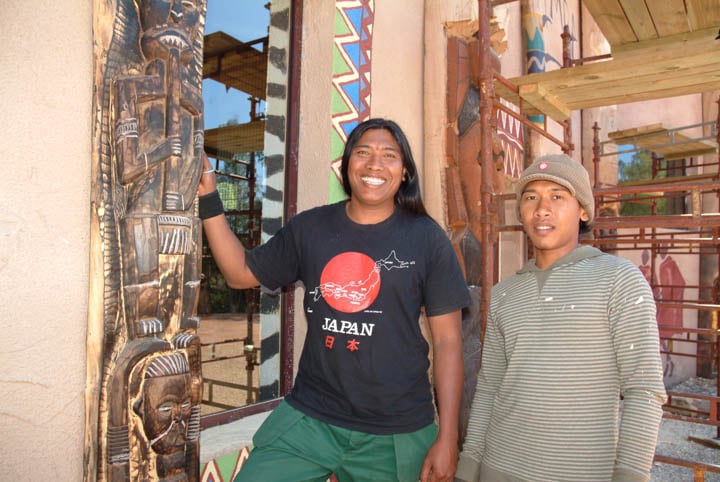 Publisert 20. september 2024 Treskjærere fra Bali Treskjærere fra Bali: To flinke treskjærere er hentet fra Bali til Dyreparken for å dekorere det nye Afrika-området. Alle utskjæringer i Afrika er gjort av disse to.