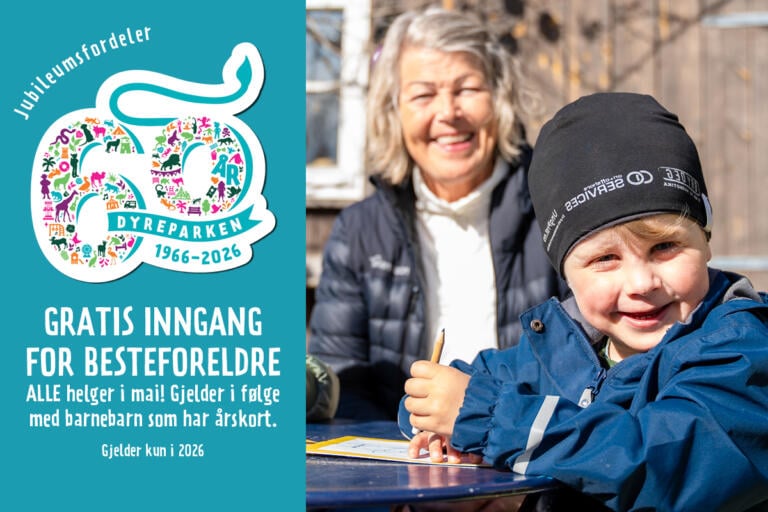 Besøk oss så mye du vil og få med deg hele 60-årsjubileet i Dyreparken og Badelandet! Med årskort for 2026 sikrer du deg både våre faste goder og helt nye, eksklusive jubileumsfordeler.