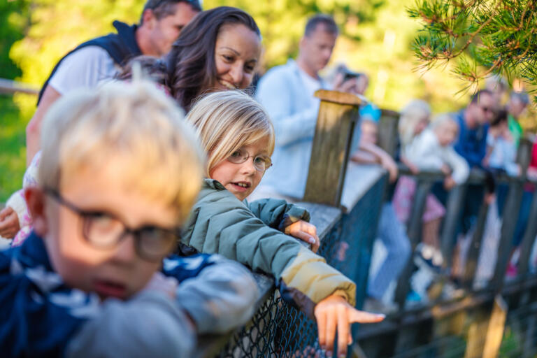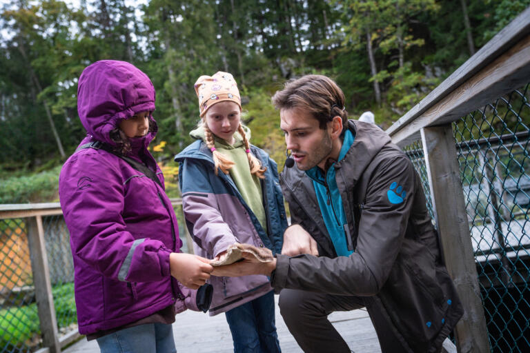 Så snart store og små er mette i magen, starter kveldens høydepunkt – safari! Sammen legger dere ut på en magisk vandring langs broene i skogen for å møte dyrene. Kanskje ser du gaupa smyge mellom trærne, hører ulven ule i det fjerne, eller får et glimt av elg, jerv, oter – og til og med kamel.