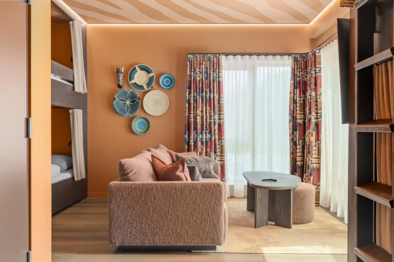 Hele hotellet er inspirert av Afrika. Dette går igjen i bilder, farger lyder og materialvalg.
