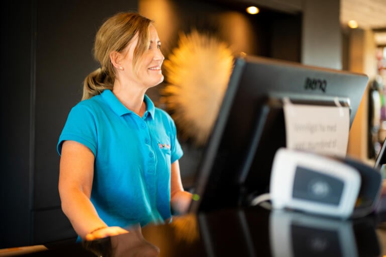 – Resepsjonsdisken har stokk- og krykkeholder.