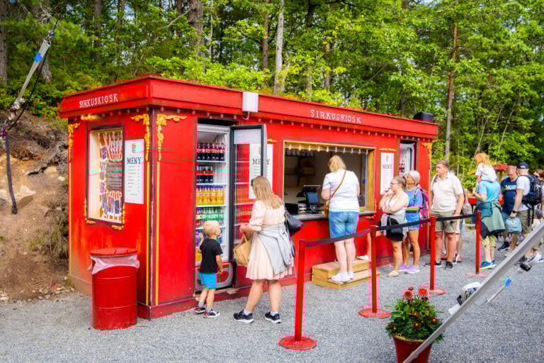 Ved sirkusteltet til Jesper finner du Sirkus Jespers kiosk. Her kan du få kjøpt popcorn, sukkerspinn, snacks og drikke til forestilling.